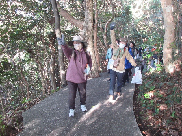 足摺自然遊歩道沿いに点在している足摺七不思議や、きれいに開花している椿を眺めつつ、参加者全員が無事に完歩することができました。